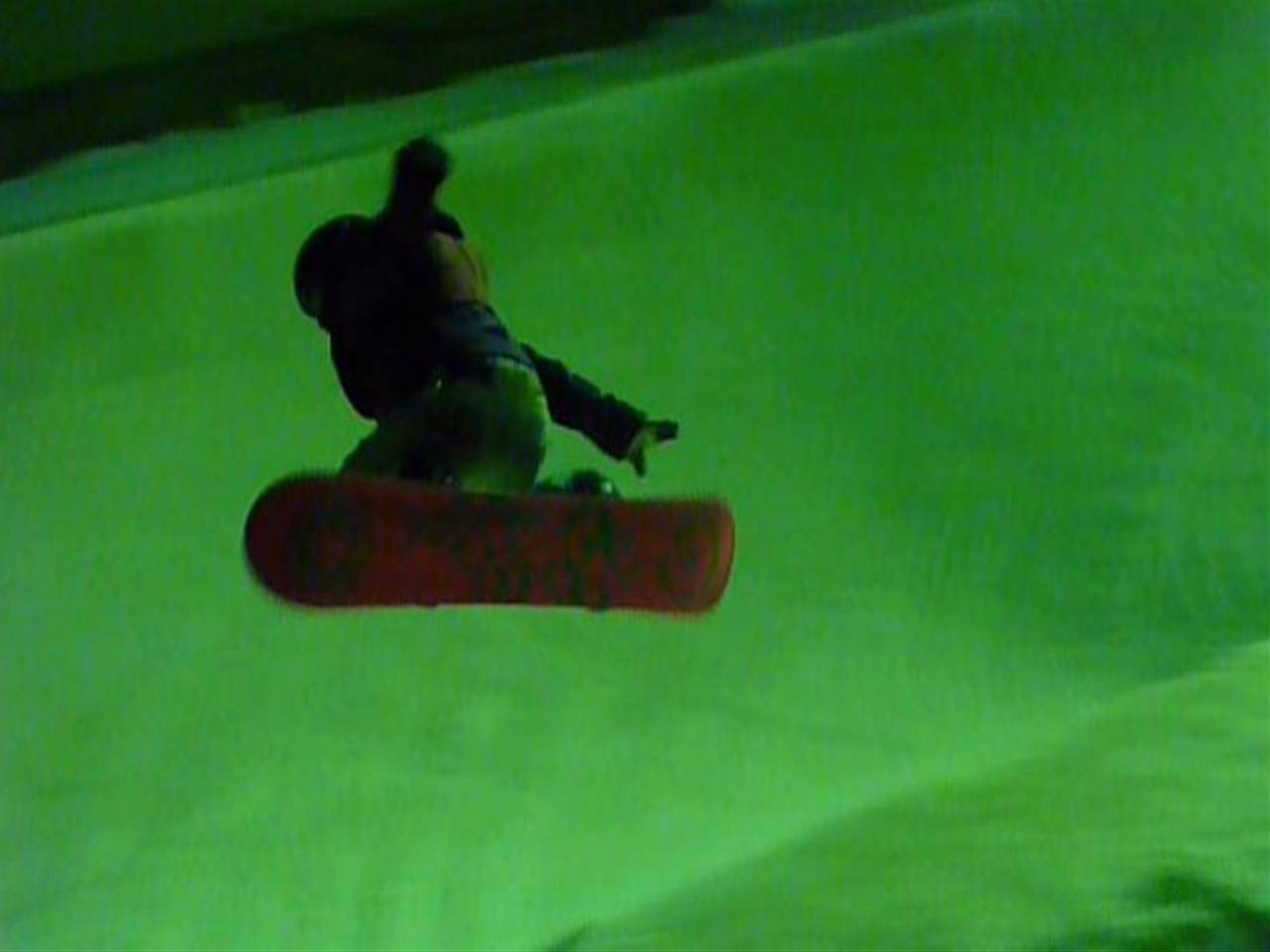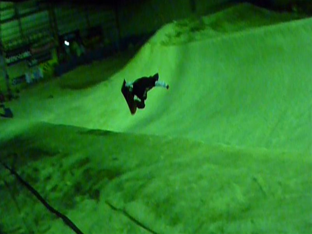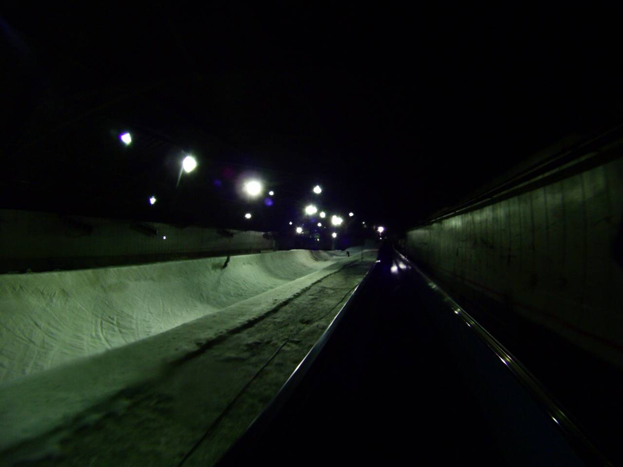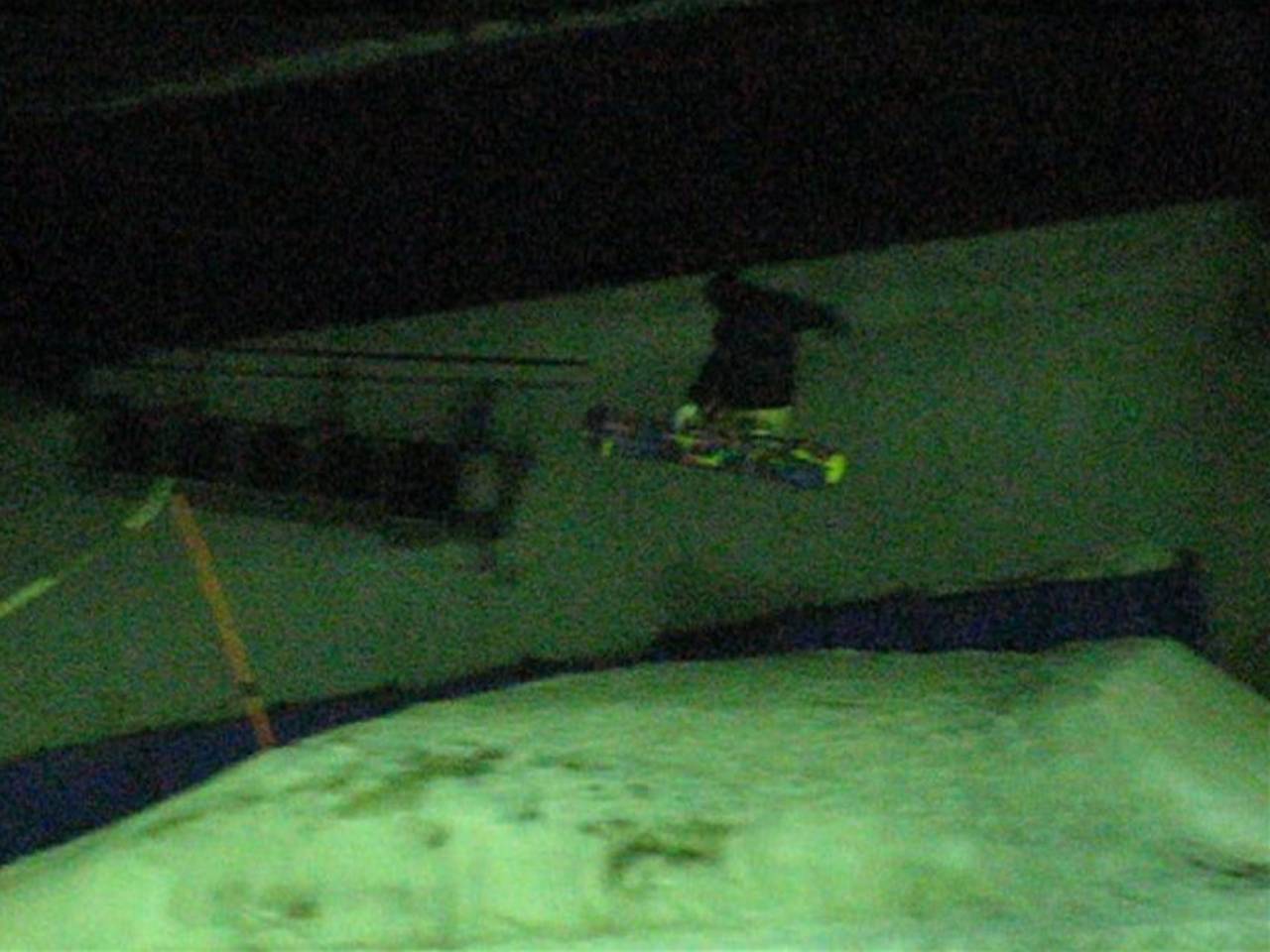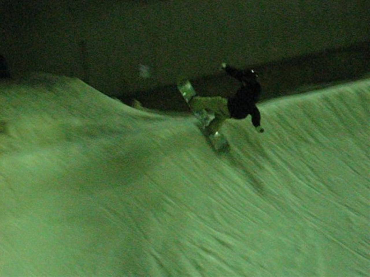 レールは危ないのでスルー(汗)して、キッカーまでの細ーいよーく締まった氷バーン(汗)をショートターンでなんとか通過して(汗)、っと思ったら、天井に向かってカキーんって立った壁が目の前に・・・(汗)。その向うはまさに未知の世界?まるでブラックホールにつっ込んで行くみたい(汗)ブラックホールに突っ込んだ事ありませんが(汗)。