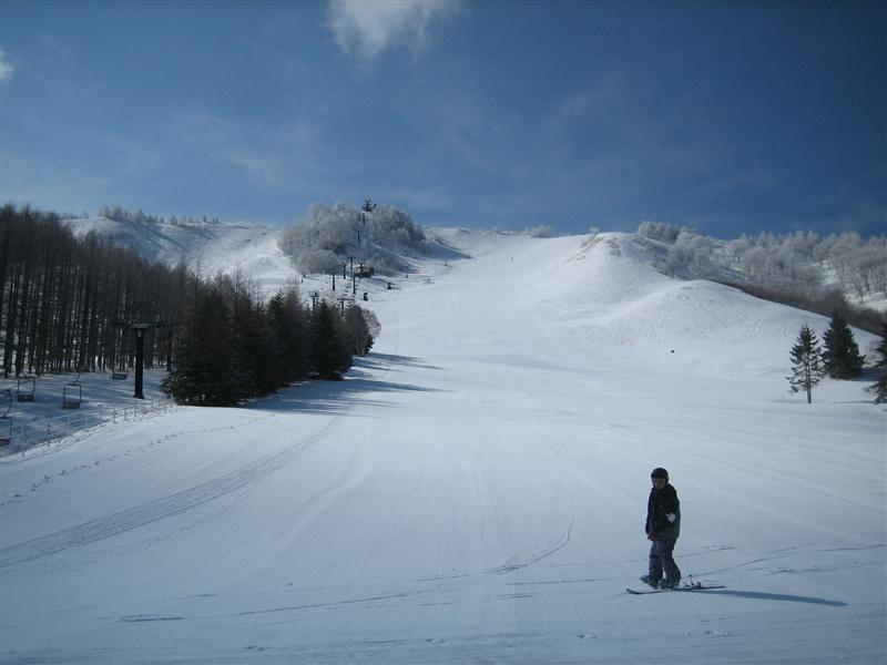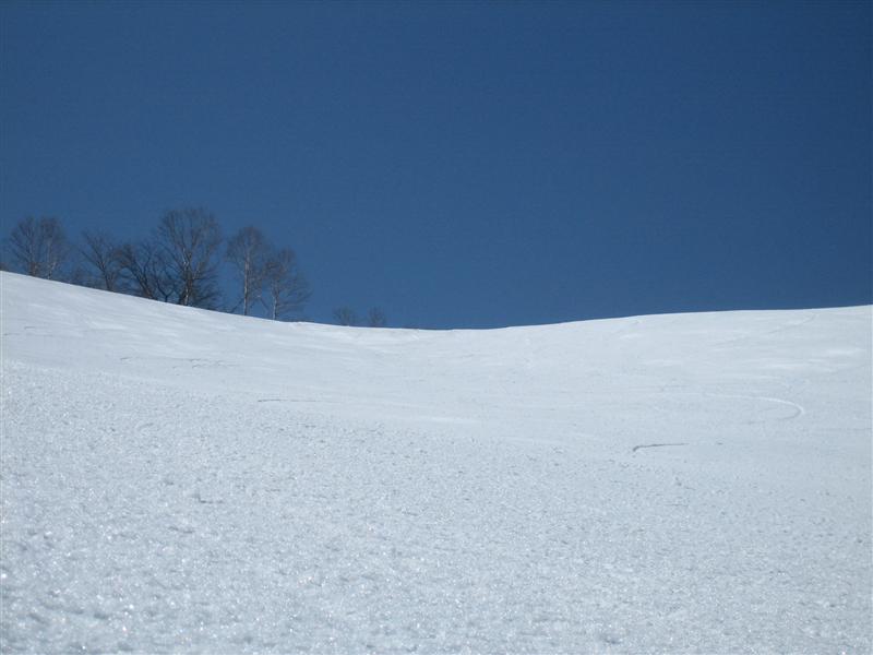 天気は最高に良かったのですが、風が冷たかったせいかバーンの緩みも遅く、午後になってやっと緩んでくるぐらいです。こんな時は緩斜面で滑るのが良かったりします!。