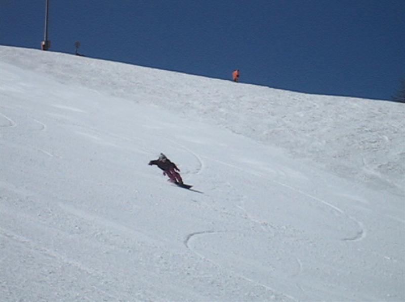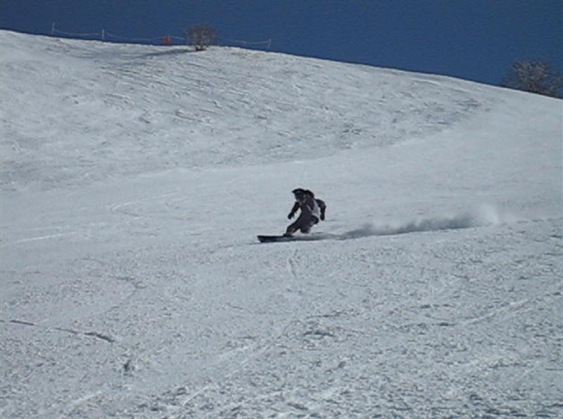 OH~!。レーシング滑りのほうがこの板の性能引き出している感じです!(あたりまえですね・・・)。緩斜面でしたが、バンディットと同じような深いラインを加速しながら曲がって行きます!。186のロングボードで!。これは凄いな~って思いました!。このレーシング滑りを他のVIRUSのカービング板でフリーライディングにも生かせれば!なんて考えています。akiyamaさん、ありがとうございました!。