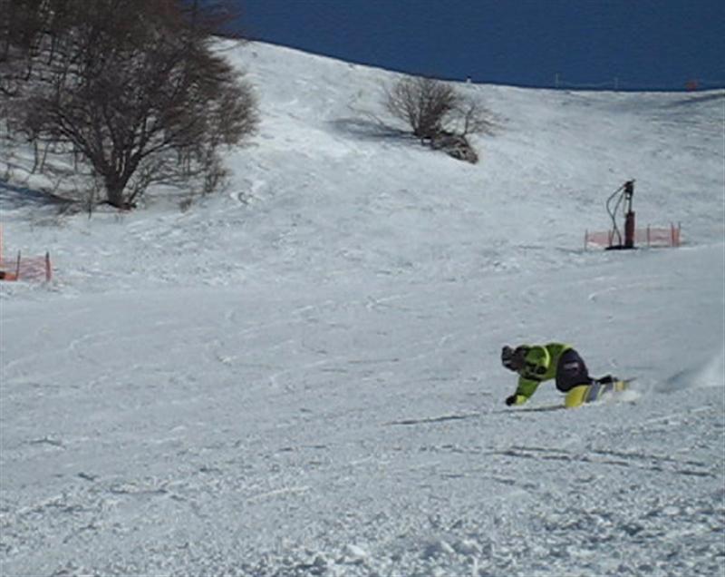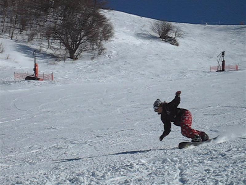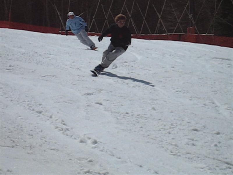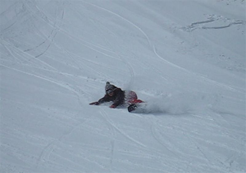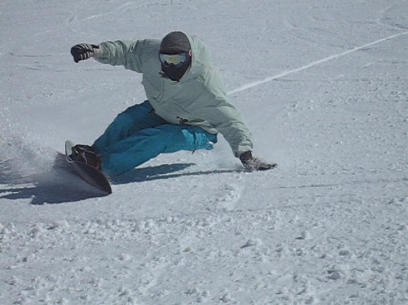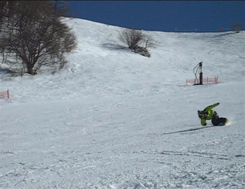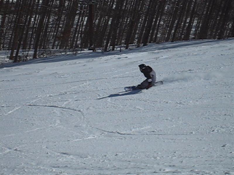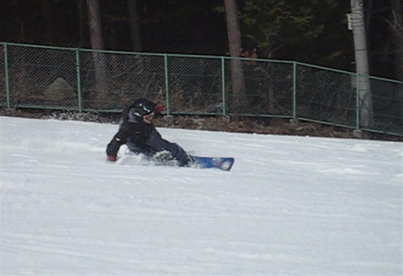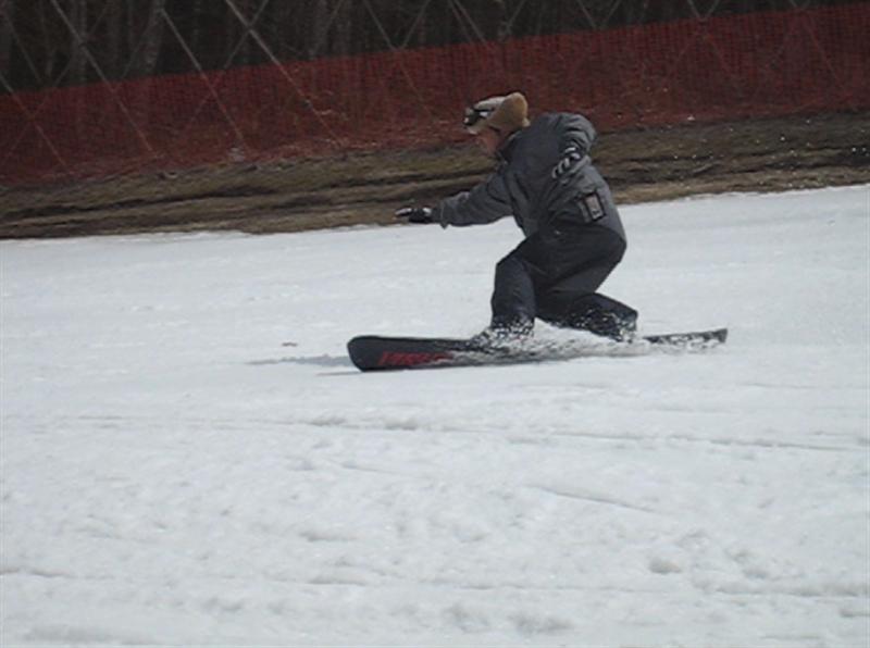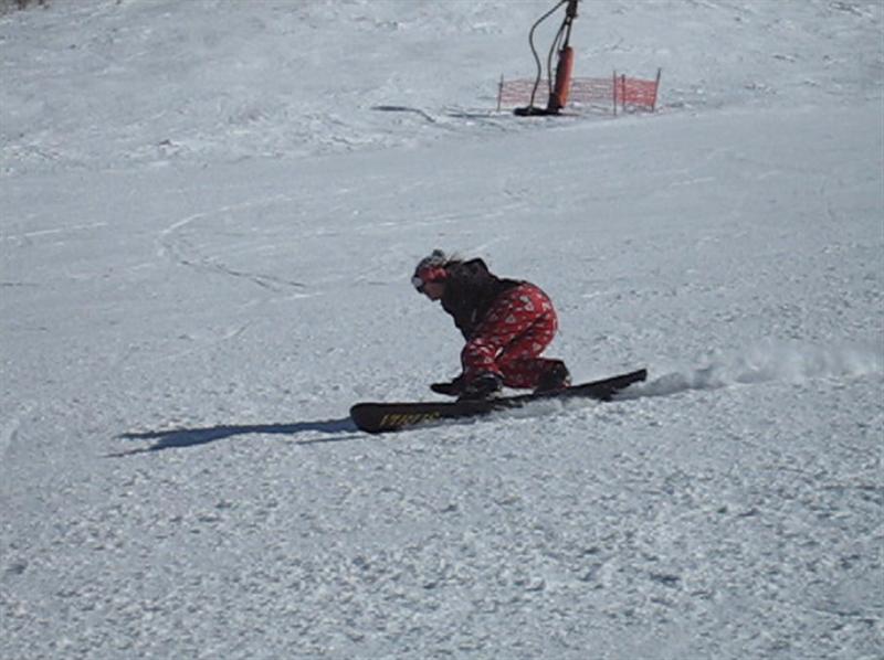 ・・・で、せっかくのレーシングモデルなのでこの板に合った滑り方で滑ってみたほうが・・・と思い、akiyamaさんに最新のレーシング滑りを教わりました。後ろ乗りでぎゅーです。