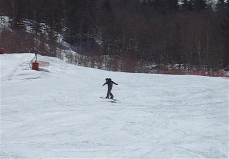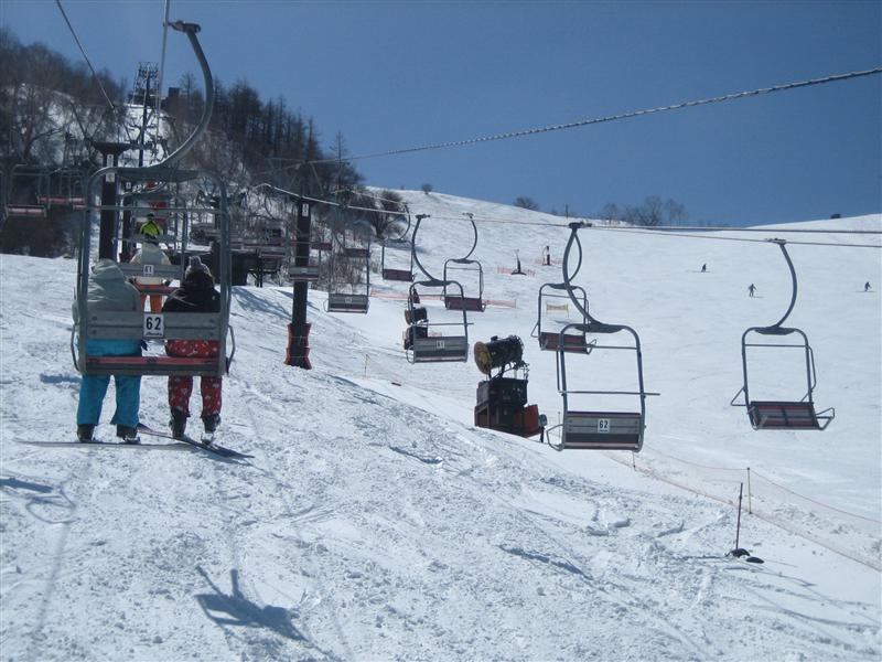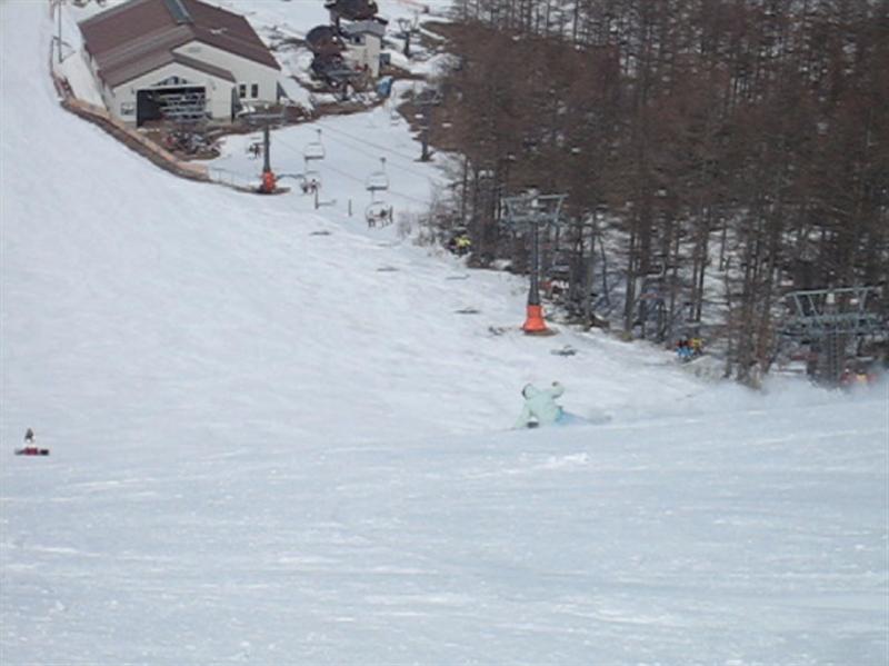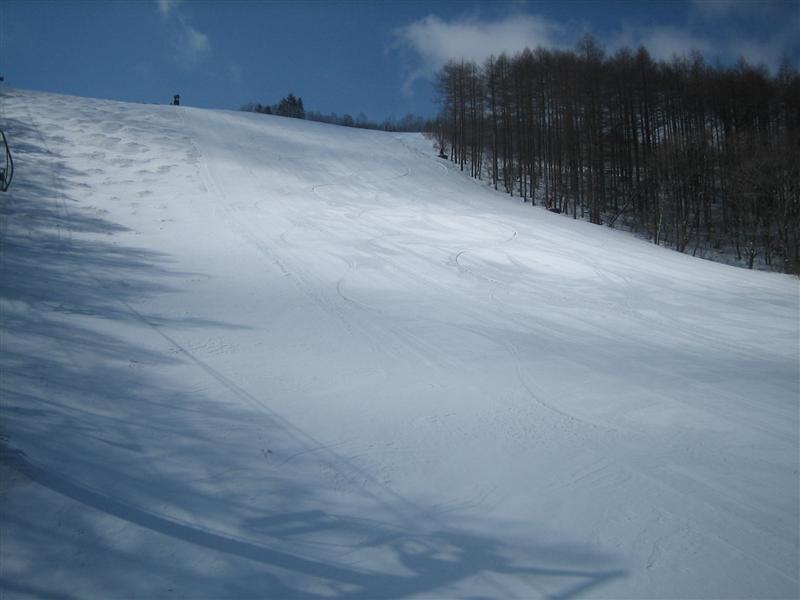 日曜日は大雨だったようでバーンコンディションのほうが心配でしたが、パっと見いいバーン!なんですが、大粒なザラメ雪圧雪バーンで、表面はカリッとしているかと思えば踏んで崩れるとか、縦段差がある所は横に走って行くとエッジが浮いて抜けちゃうとかで、急斜だとちょっとテクニカルバーンでした。