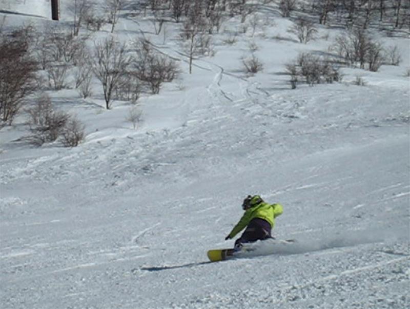 ちょっとバーンコンディション的に厳しかったのですが、急斜でも気持ち良く楽しくフリーライディング出来ました!。柔らかい雪でしたら問題ないと思いますが、フリーカービングで横に走るビッグロングカービングをした時に、もうちょっとソフトフレックスのほうがいいかな~って思います。