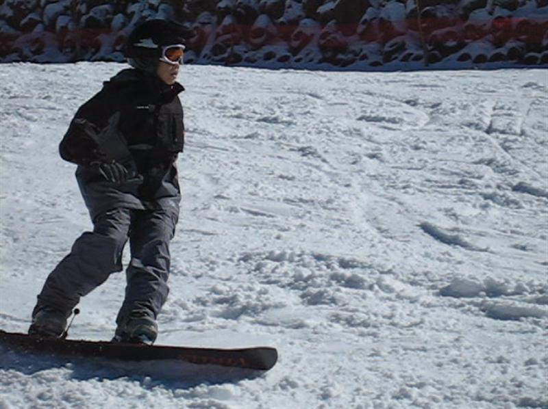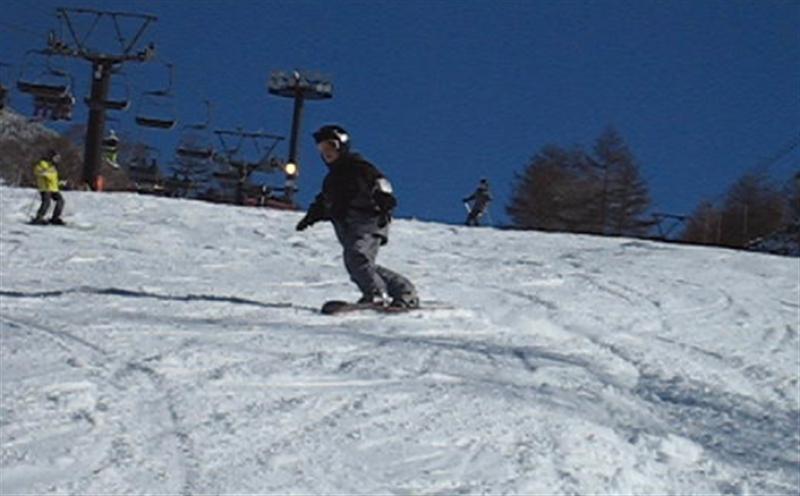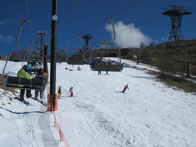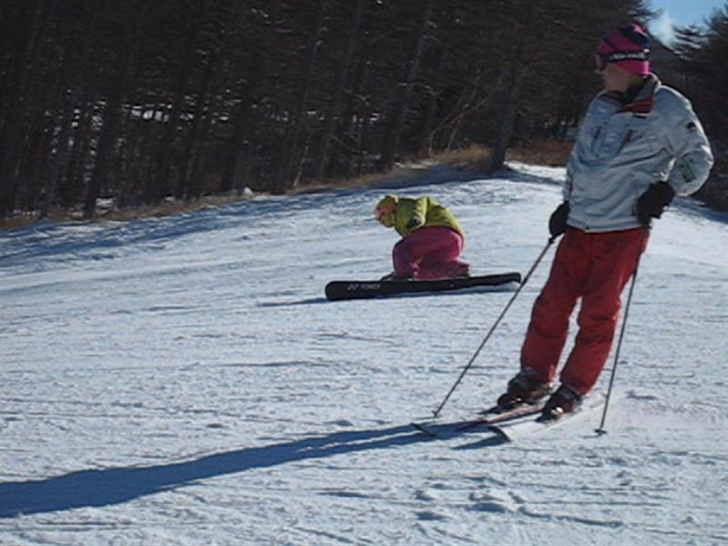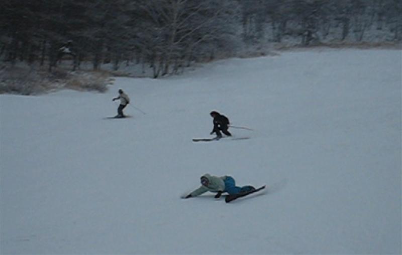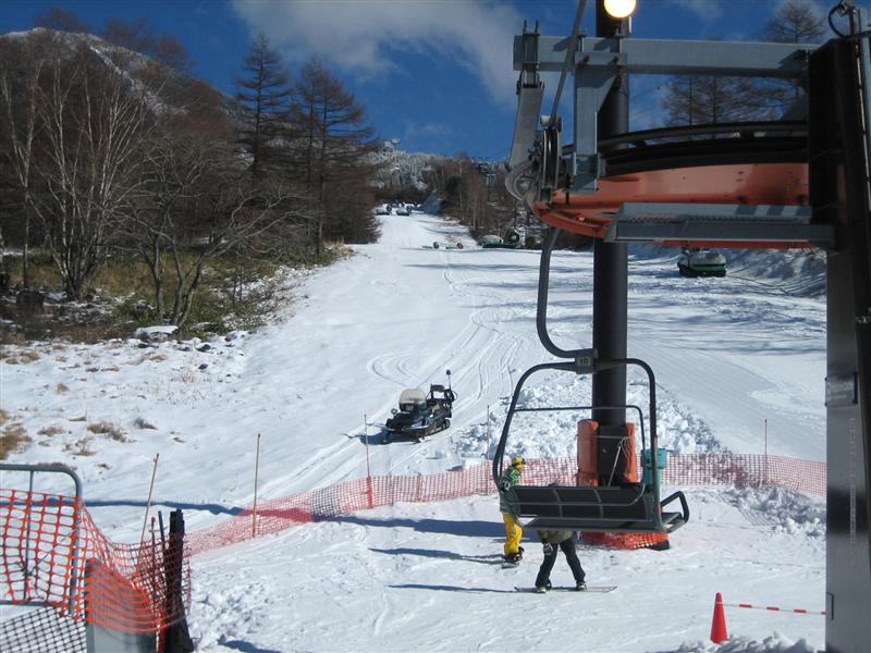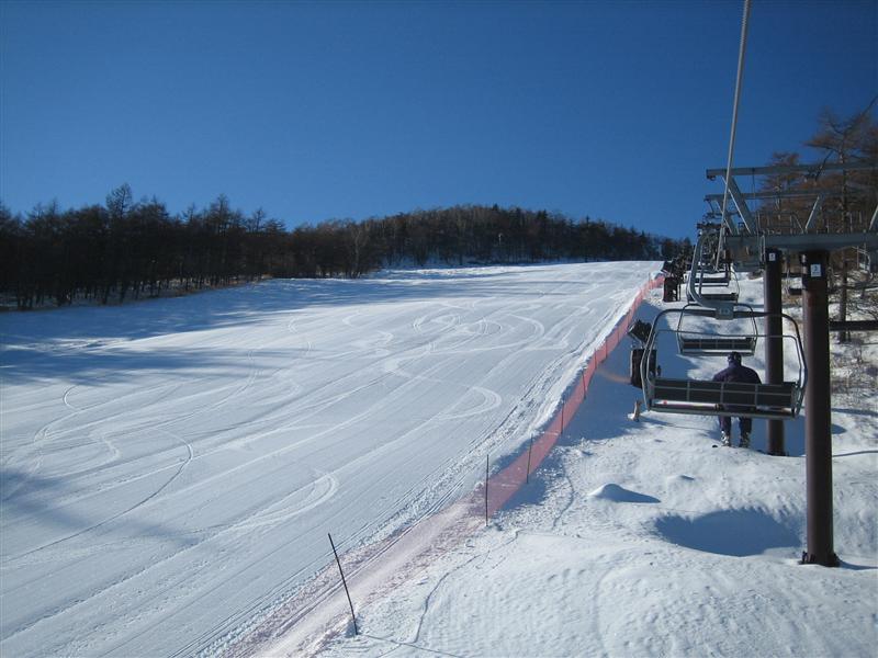 アサマのステージ2のリフトを降りたところから、本ゲレンデに出るのに5mぐらいな細い所を横滑りで下りて行きます。