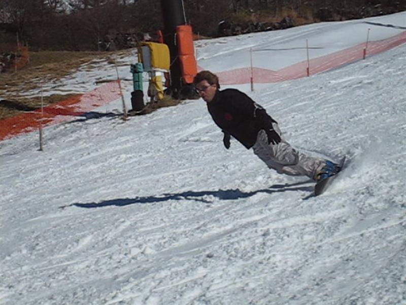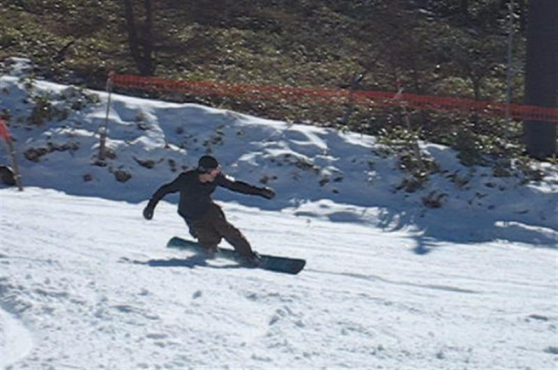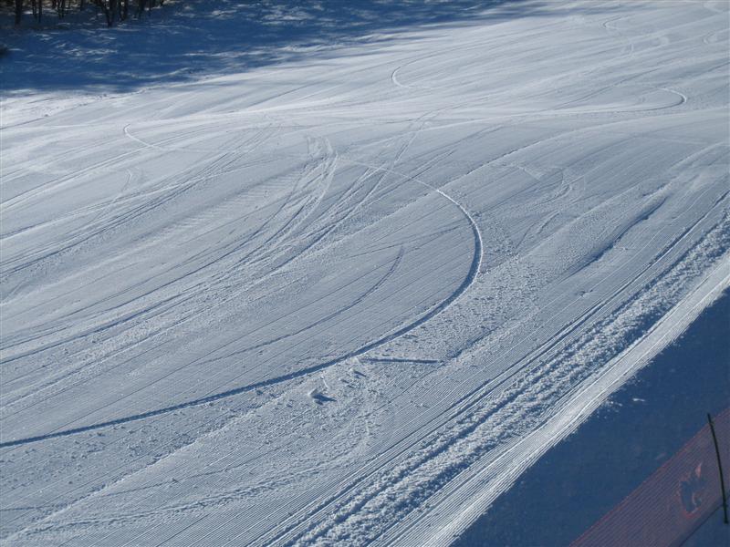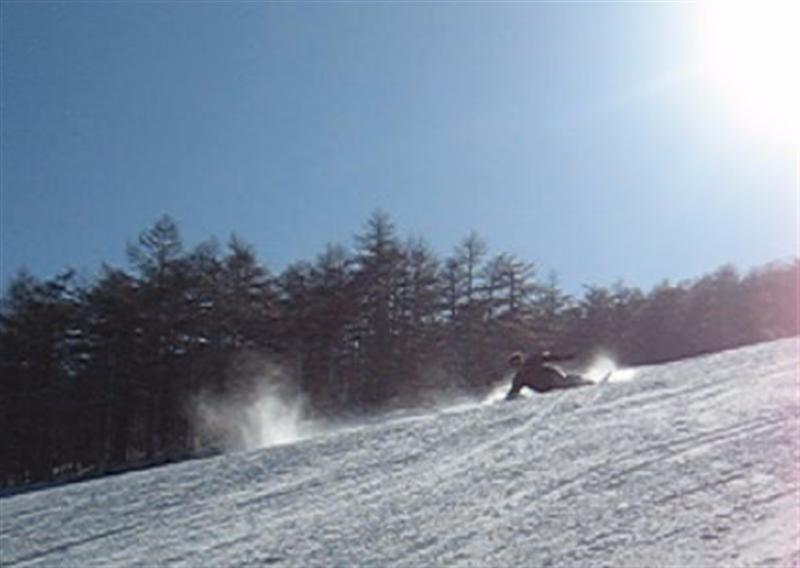 谷周りで板からの圧が無いのでそのまま様子をみながら曲がって行くのを待っていると、そのうちスピードが出て来て山周りに突入して、今度は板の長さから来る想像も出来無いぐらいの圧が板からやってきます。その状態になってから自分が圧をかけようと思っても、膝が伸びないぐらいの高圧なのでそのまま板は走り続けて切り返しが出来なくコースアウト方向に発射して行きます(汗)。谷周りでしっかりストレート体軸を作る事が大切だな~っと思いました。