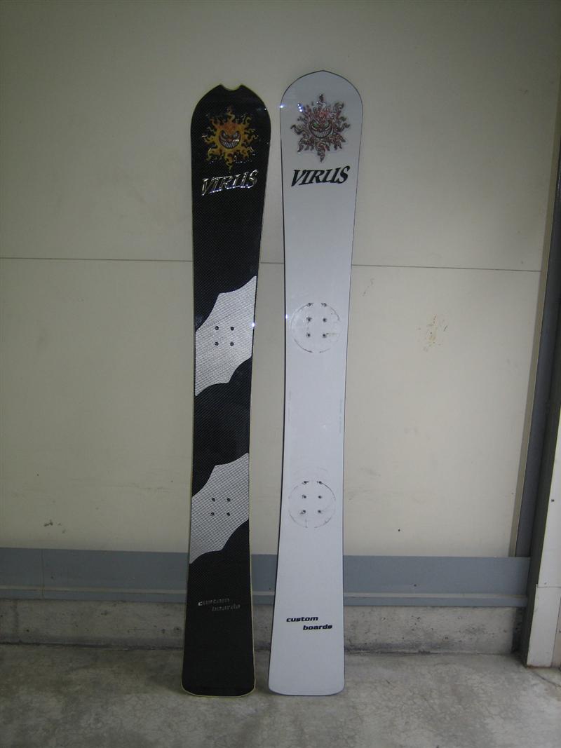 この白い板は、VIRUSJAPAN神谷社長さんの提案でVIRUSJAPAN限定モデルとして来シーズンから登場する板です!。そのプロトタイプを神谷社長さんからお借りしました!。