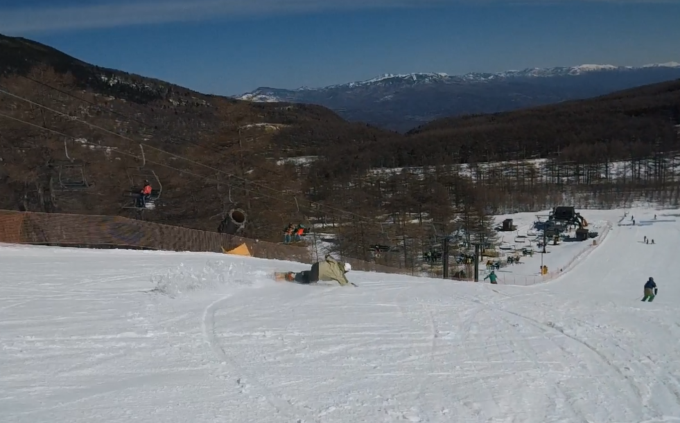 ・・・ここからはまー余談ですが、私はちひろには何も言わせずに色々な板を乗らせて来ました。セッティングすら本人の意見なんて一言も無く、私のセットしたまま。それでも奴はボードが変わろうが、セッティングが変わろうが、乗り方が変わろうが普通に滑れてしまう・・・ある意味すげー奴です^^;。今回は初のここまで長い(193)しかもパウダーボード。難しいのなんて当たり前です。でも何とか対応してました。そこにオンリーワンスタイルがあります。