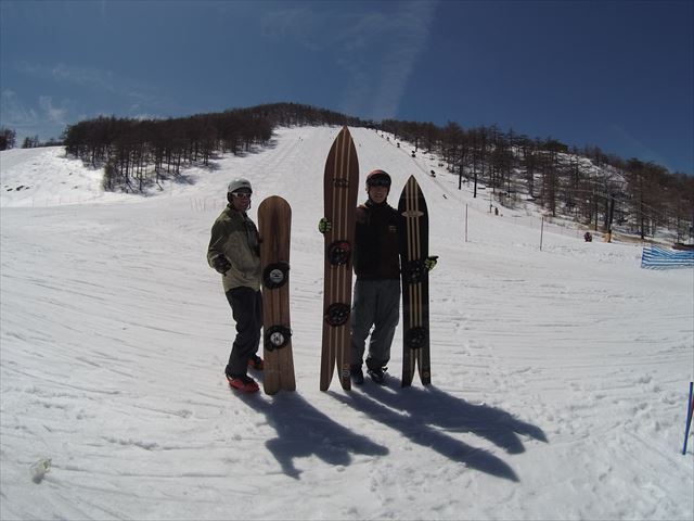 ・・・私のボード選びは、見た目のインパクトと乗りにくさ。試乗して滑り易いとか良いとかって思うって事は、現在の自身の技術のレベルに合っている事って思っちゃうんです。もっと上手くなりたいと思うのであれば、難しくて乗りにくい板がベストまーち!。くそ板ほどレベルアップさせてくれるいいボードなんです!(私のボード達がくそ板と言う事では無い)。私はボード屋さんでもありますが、そんな理由から試乗会なんてやらないですし、試乗したい方にはとりあえず買って~!って買ってもらいます^^;。だって欲しい板って乗りにくくたってくそ板だって欲しい物は欲しい!見た目とイメージは大事です!オンリーワンスタイルはそこから生まれます!!。・・・なーんてまるで板買え買えの呪文のようですが、私はまったく売る気無いので私の偏屈な考えに賛同して頂ける方はくそ板選んで(私の売る板がくそ板と言う事では無い)オンリーワンスタイルを追及していきましょう!。・・・久々に長すぎた( ̄〇 ̄;)。
