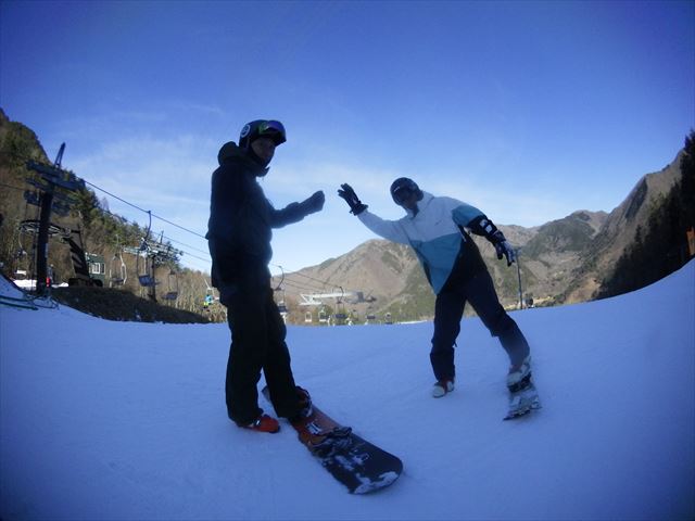 ・・・今日は昨日よりは柔らかかったものの、まーまーいい雪でした!。白馬帰りのHatushika先輩、正月白馬のYamaguchiさんからしたらーmisakaは天気良くってカービングバーンでパラダイスですね^^y。・・・ふくしま先生には柔らか過ぎでした^^;。