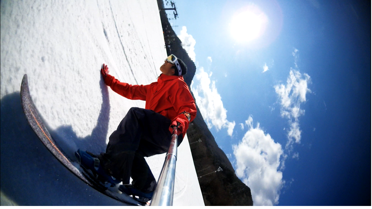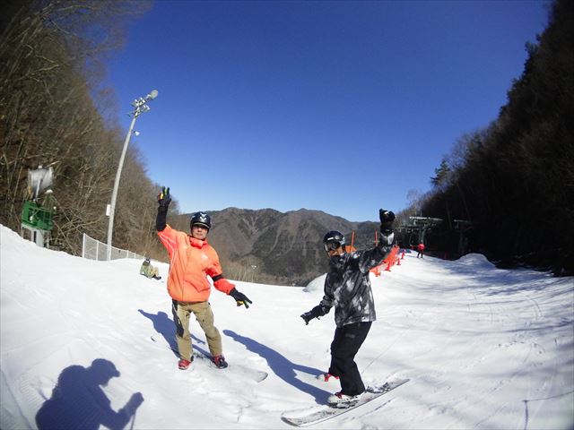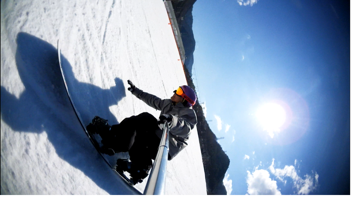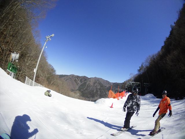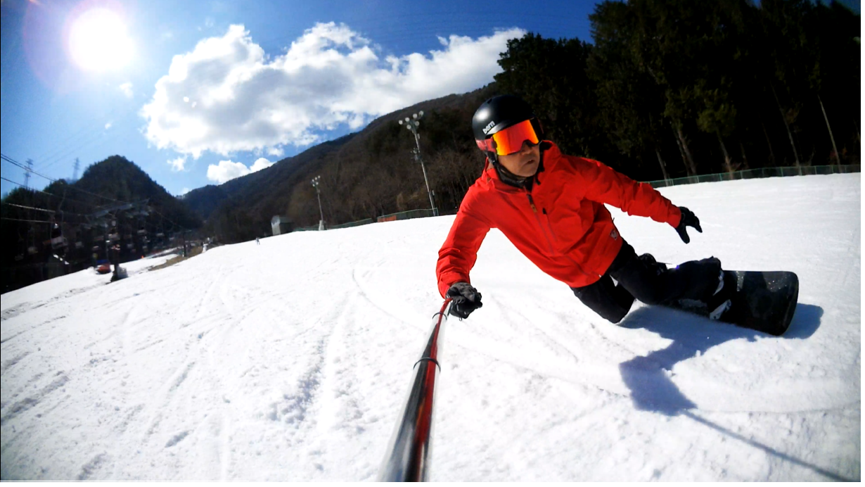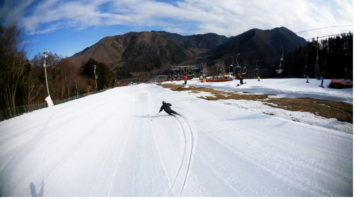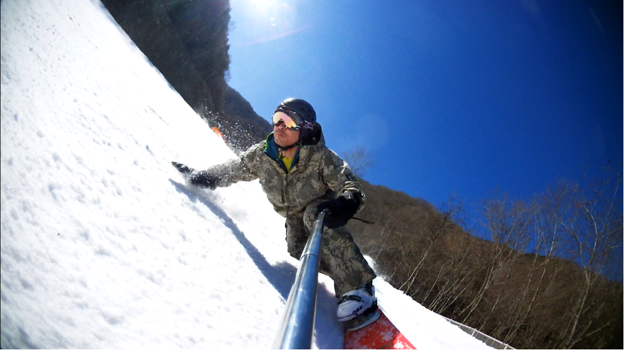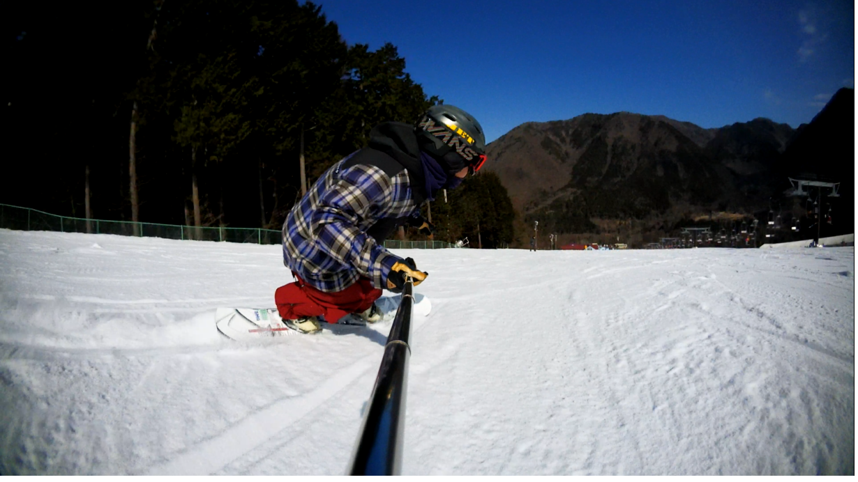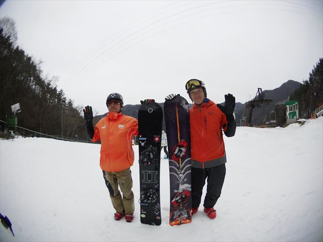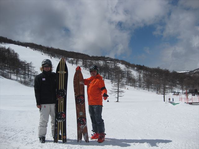 ・・・高峰山を境に晴れと曇り。何とか午前中はもってくれました!。今日のasamaxはその名の通りハードパックで最高!整備も綺麗フラット!お客さんもすくなーい!。パーフェクト!。今日はm-hiroさんとパウダーガンカービングDayだったので、これまた硬めのバーンでさいこー!。なんてったって、最近のフリスタカービングボードよりも柔らかいフレックス&トーション。カービングに関しての限界なんて低いです。でもそれが面白い!。萌え萌えです!。