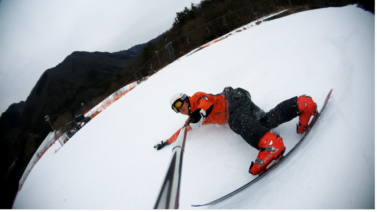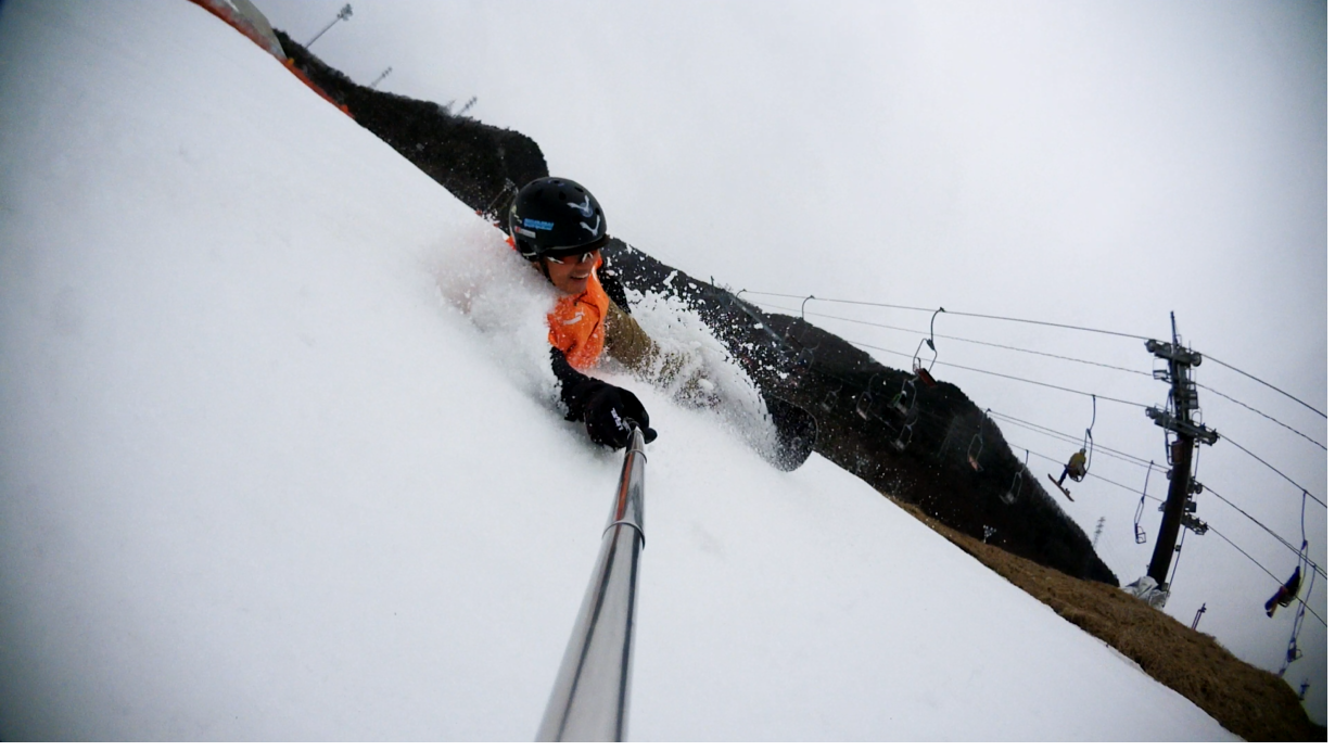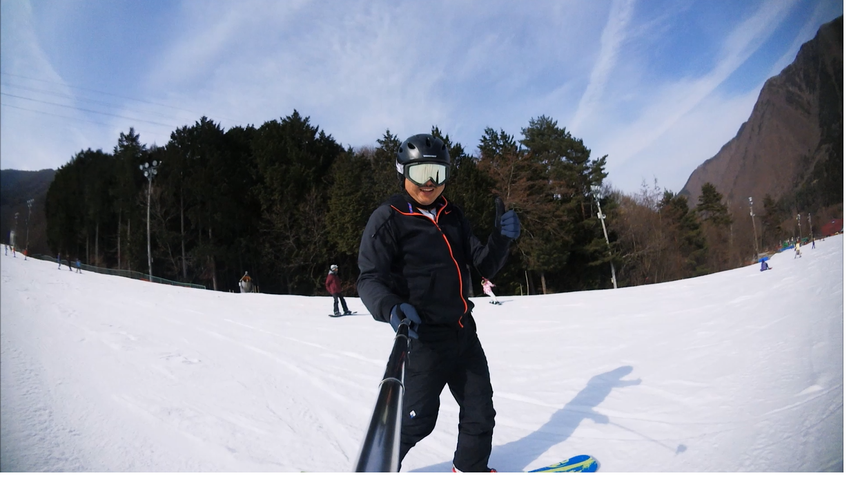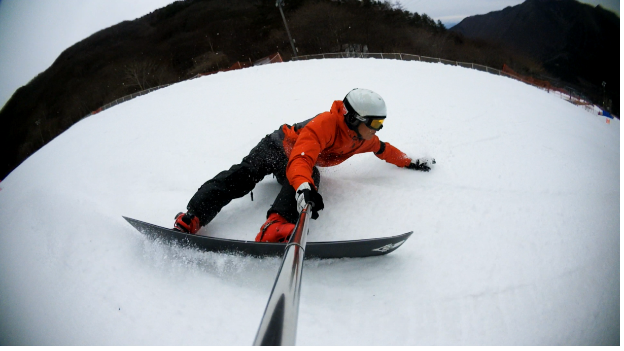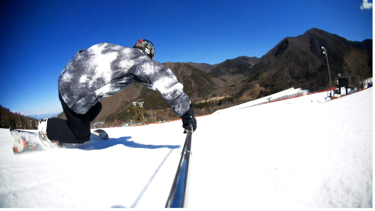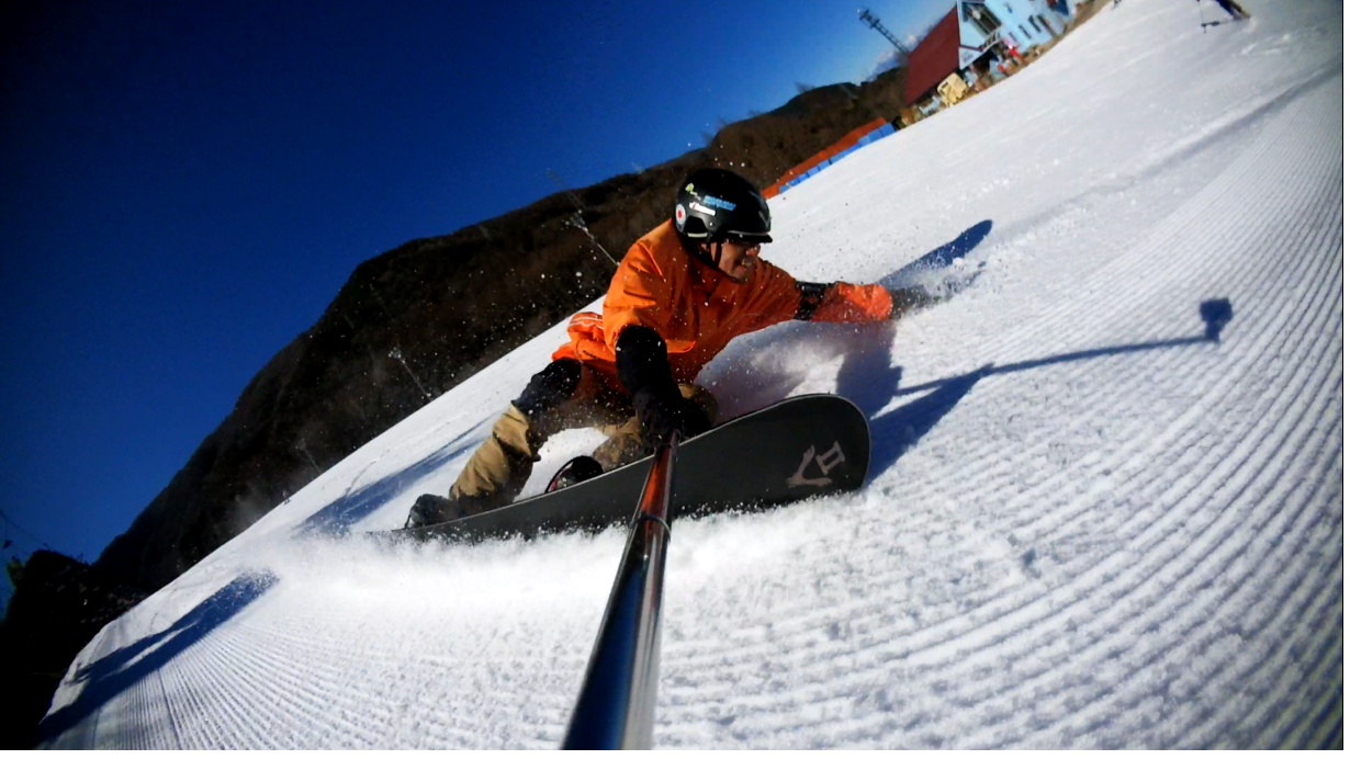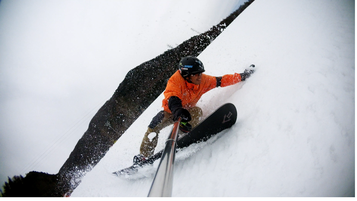 ・・・高峰山を境に晴れと曇り。何とか午前中はもってくれました!。今日のasamaxはその名の通りハードパックで最高!整備も綺麗フラット!お客さんもすくなーい!。パーフェクト!。今日はm-hiroさんとパウダーガンカービングDayだったので、これまた硬めのバーンでさいこー!。なんてったって、最近のフリスタカービングボードよりも柔らかいフレックス&トーション。カービングに関しての限界なんて低いです。でもそれが面白い!。萌え萌えです!。