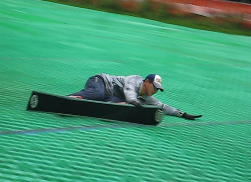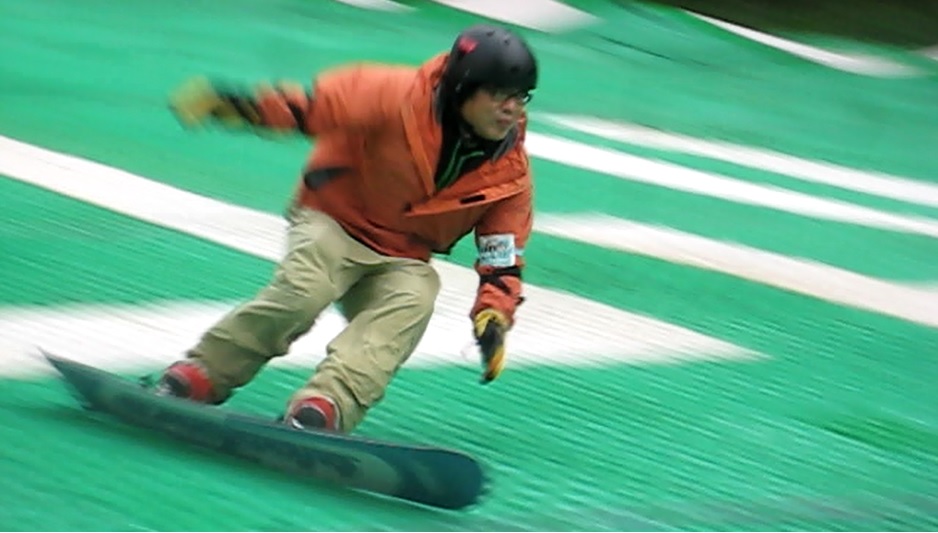 ・・・曇りで気温も高くなく、プラのグリップもよくてGoodコンディション!。でもsnoはほとんど普通にカービングしないでLaydownの練習・・・。だいぶ体にインプット出来てきたら、普通にカービングするよりもLaydown中のほうが安全で安定している事に気づく・・・そう、Joergさんが言ってた言葉・・・Laydownは氷の急斜を安全に滑り下りるためのもの・・・。パフーマンスとしても最高のライディングですが、本来の本質はそこなんです。確かにプラの低μコンディションで板立てて減速しながらDeepに曲がるのには、Laydownでしか無理だと思ったです・・・。