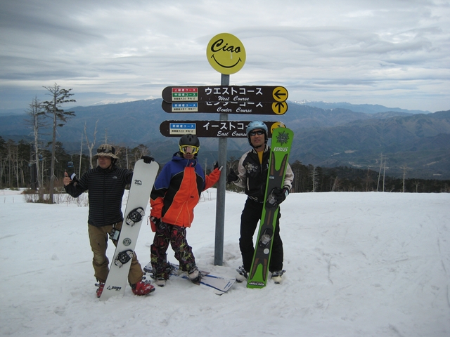 チャオにはさくらが産まれる前だったので実に10年ぶり。その時は4月中旬で、雪はザクザクの波々、斜度は緩くてコース長っ(汗)・・・と、あんまり良い印象なかったのだけど・・・。今日は名古屋支部長tanakaさん、豊田支部長tsapzyさんと現地集合!。御岳エリアローカルのお二人と一緒なので、また違った印象のチャオになるかな!。