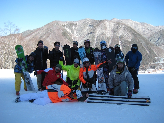 ・・・と、お隣には遥々秋田から来て下さったsatouさん!・・・そして続々といつものmisakaなメンバーが!。滑る前から駐車場で大盛り上がりでした!。