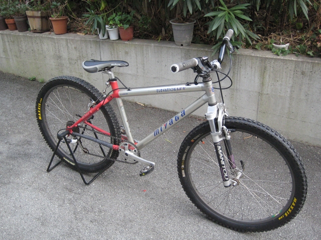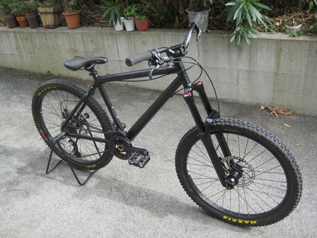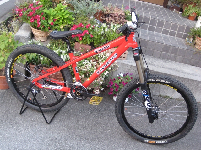 ・・・今日のミヤタ号・・・ちゃりんこ博士shimamuraさんに・・・「このフレーム溶接じゃなくてはめ込みと接着剤で作っているから抜けちゃうかも~・・・フロントサスのここが折れちゃうかも~・・・」・・・やはりこのちゃりでDHはヤバいみたい(汗)。