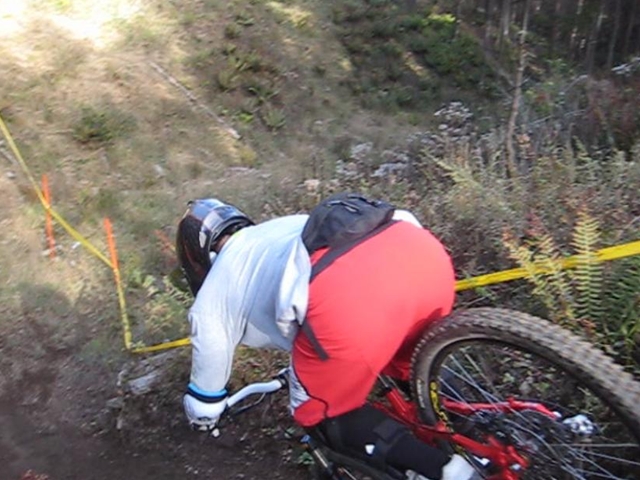 朝一C走って続いてA。さすがにヤバそうだったので次ににB走ってやーめた・・・っておもいきあ、Bのあまりのどっかんどっかんでシートポストが割れて(汗)サドル脱落(汗)。途中からサドル手に持ち割れたままのシートポストのままB下ってきました・・・ケツに刺さったらこの世の終わりだと思った(汗)。