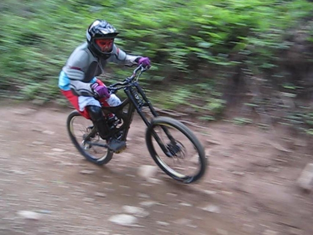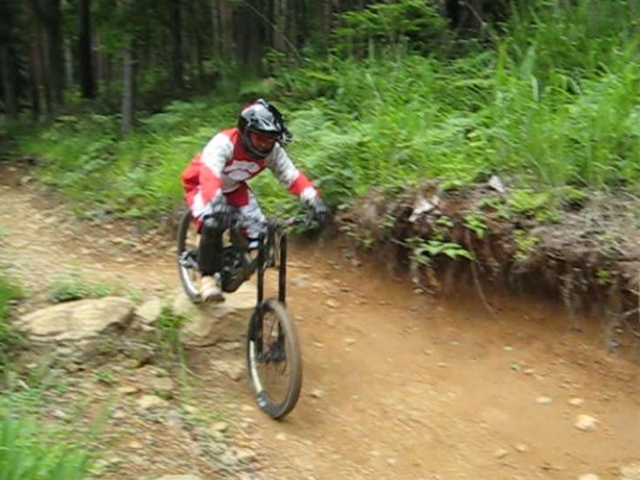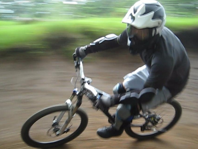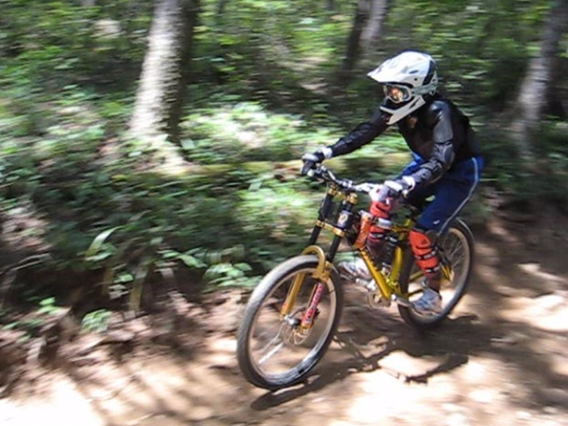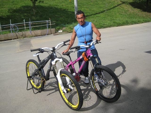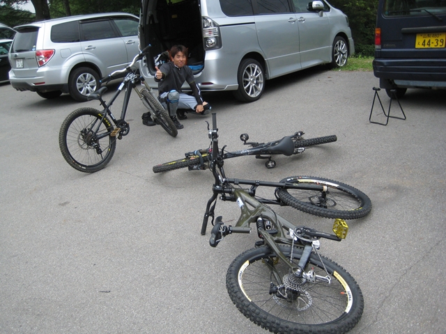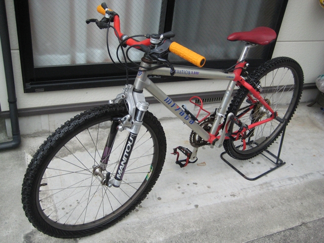 これはミヤタのMTB。最初期のフロントサス付きとかで、なんとマニトゥ~!。今は固着しちゃっているので、動くようにしてパノラマこれで下ってみます!。