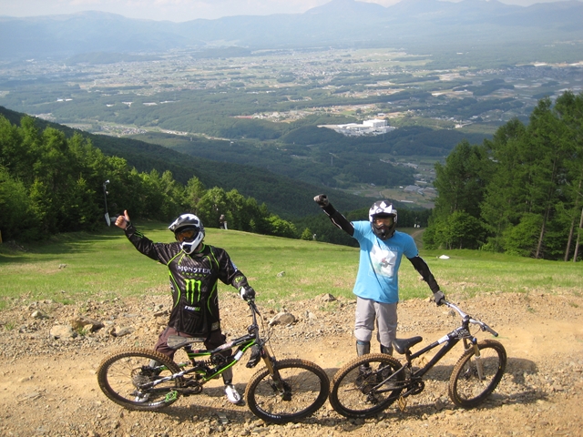 ・・・そして今日は、昨年の夏にちゃりんこ買ってたのに予定が全然会わなくて、実に一年近くなっちゃいましたがchizukaさんちゃりDHデビュー!・・・初めは山ちゃりかふじてんでも・・・って思ってたのに、chizukaさん一発目から富士見なんて!(汗)。
