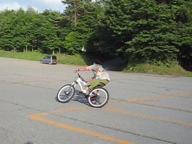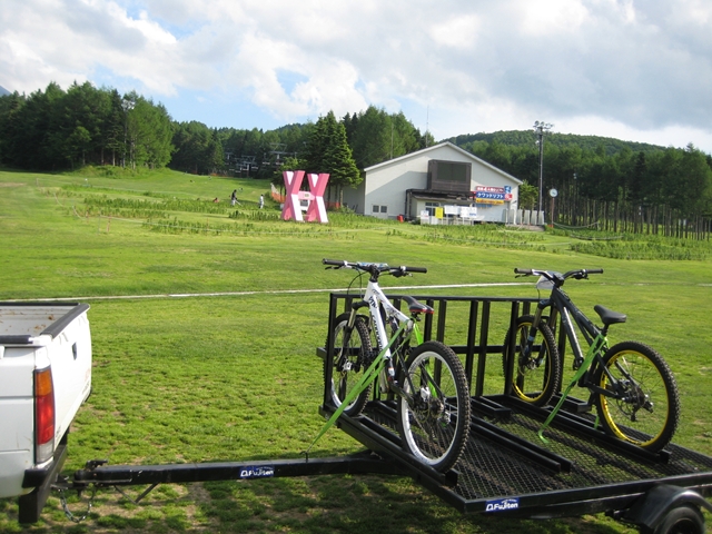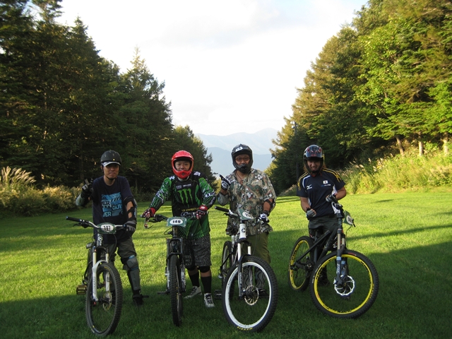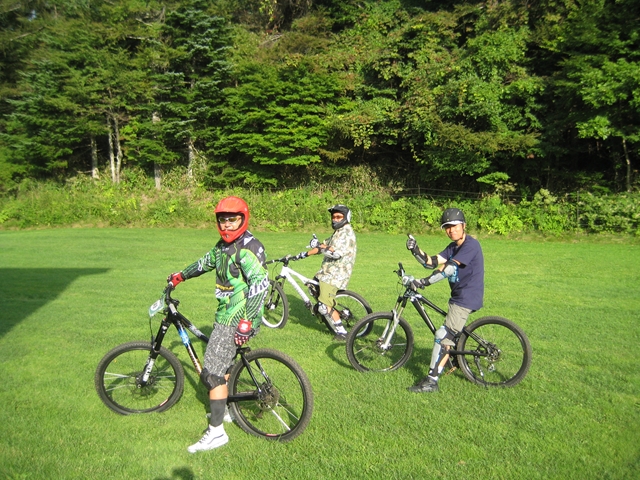 今日はozawaさん、nakazawa先生、そして今日がマウンテンバイクもコースも初めてなohno会長と4人でコースイン!。走りはじめが2時頃だったので、午前中から来てたお客さんはみんな帰っちゃって4人でコースと搬送車と搬送兄ちゃんを貸切状態でした!。2時間半の間で車搬送で6本!。ohno会長は初めてとは思えない走りでもーハマっちゃったね!みんなちゃりんこもスパイルっちゃってー!。楽しくない無いはずなんてどこにも無いですちゃりんこ!。これからはいいシーズンですよ!。涼しくなってきて、枯れ葉落ちてきて枯れ葉パウダーも気持ちいいし!。