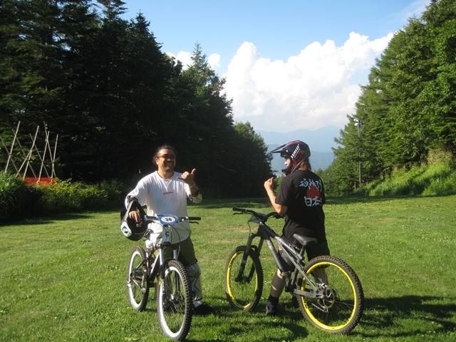 はじめてでこれだけ走れちゃえばもーGoodじゃないですか!。とにかくsのおじさんはMTBをはじめてくれた事、コースに挑戦してくれた事が一番嬉しい事ですよ!。・・・ホントは、昨日雨降っちゃったからコースウエットと思っていたので晴れてコースドライの時にデビューのほうが良かったかな?って思いましたが、結果的に半ウエットでも走れちゃったし!。なので今度ドライを走ると全然楽に感じますよ!。今度はドライ時に走ろう!。お母さんも!。