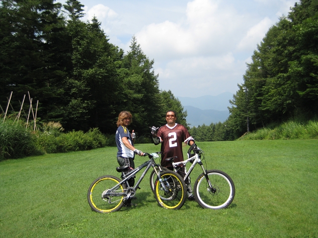 今週はずーっと天気悪い予報だったのでダメかなーっておもいきあ・・・昨日はありえない程の晴れ(汗)気温35度オーバー(汗)。これで路面乾いたかなーって事で、今日は午後からふじてんでした!。