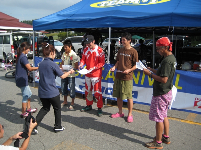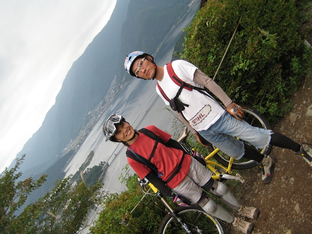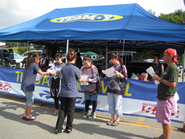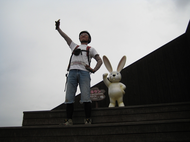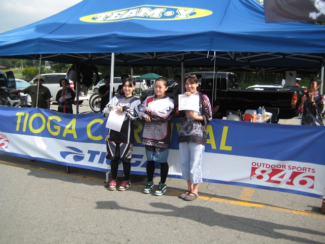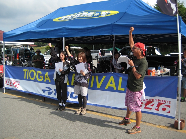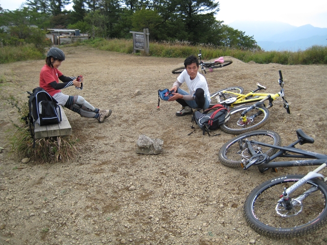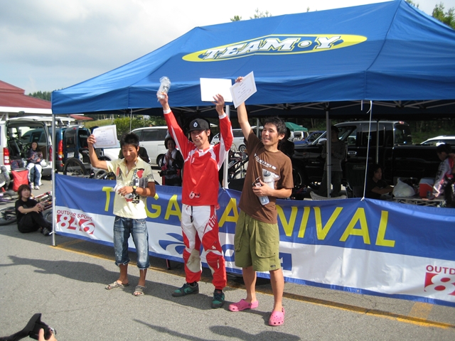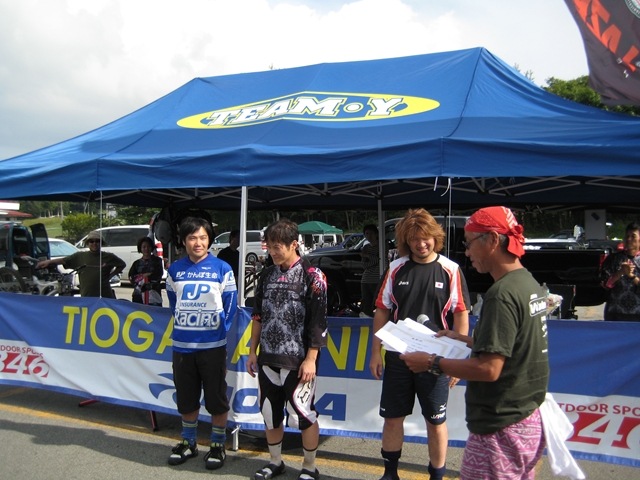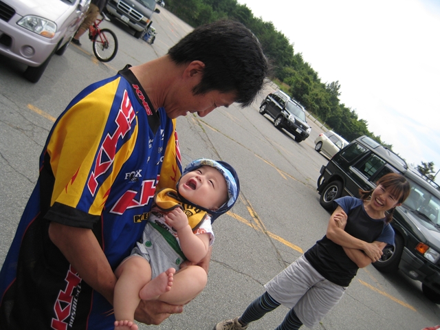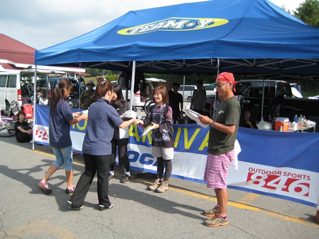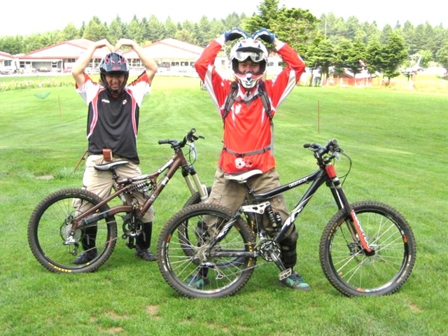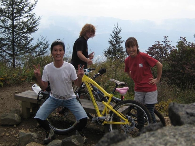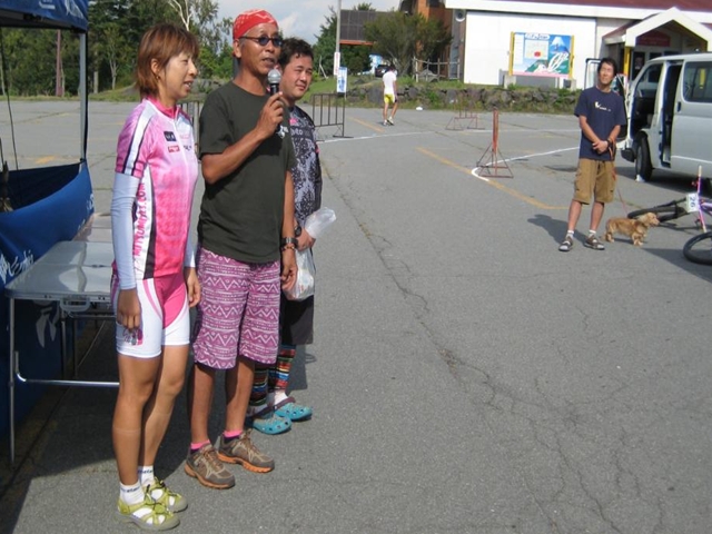 主催者の方でマイクでずーっと喋ってたおじさん!と、午前中のクロカン3時間エンデューローレースのコースセッターで、3時間一人で走りっぱなしだったかわいいピンクのウエアーのプロ?のクロカンライダーのお姉さん!と、アバランチェレースのコースセッターで、東京のちゃりんこ屋さんのお兄さん!。