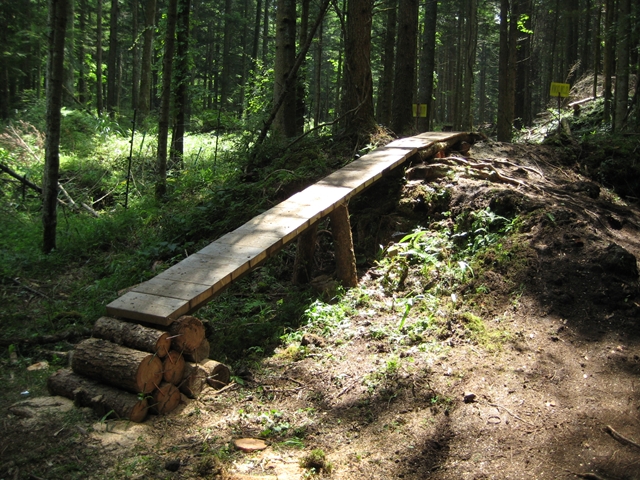 今回のレース専用に解放された遊歩道のウッドチップ敷きロードと下の芝スラ。ウッドチップはまるでパウダースノー?。いつもは走れない所なので、ここぞとばかりに練習時に撮影(汗)。↓