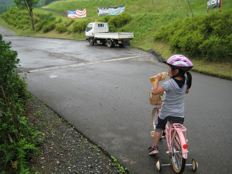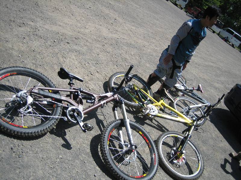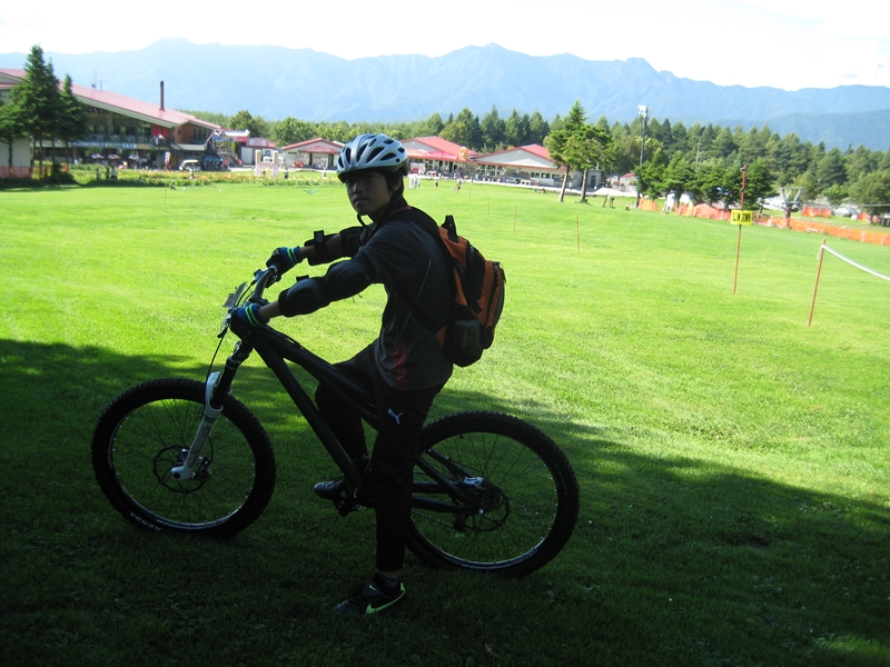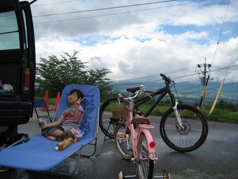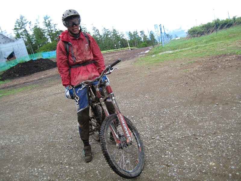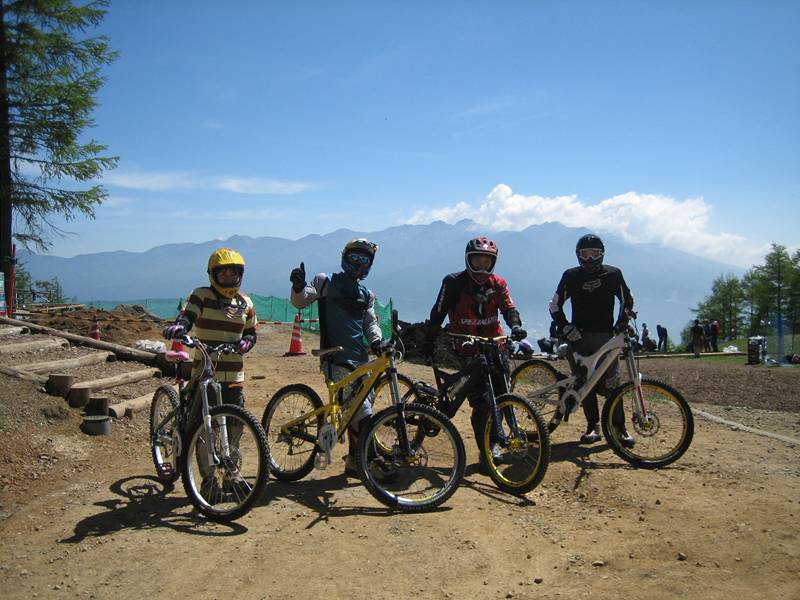 パノラマのハイスピードハイリスク?高難度?ロングコースは、それはそれで面白いし魅力もあります。・・・で、朝霧高原にあるMTBコースふもとっぱらは、ラダーがロングであったりテクニカルだったりでかなりマニアックなコースなんですが、sのにはマニアック過ぎて・・・あと、上までの搬送が車に乗って・・・なので時間もかかるし・・・。で、今回ふじてんがオープンしたので行ってみたわけですが、斜度も難易度もsのに丁度いいくらいでした。しかも芝コースとダブルトラックがいいです!。パノラマは気合入れて体全体で戦う?ような感じで疲れるのですが、ふじてんは疲れないで気持ち良く走れるくらい!。ちひろでも楽しめるのでこれからはじめたい方にもお勧めですよ!。ちゃりんこは、フルスペックなDHバイクなんていらないですし、ハードテールでも十分?と言うか、路面が柔らかいのでハードテールのほうがダイレクトでクイックでいいかも。今日はちひろにハードテール貸しちゃったので、今度はハードテールで走ってみたいな・・・。