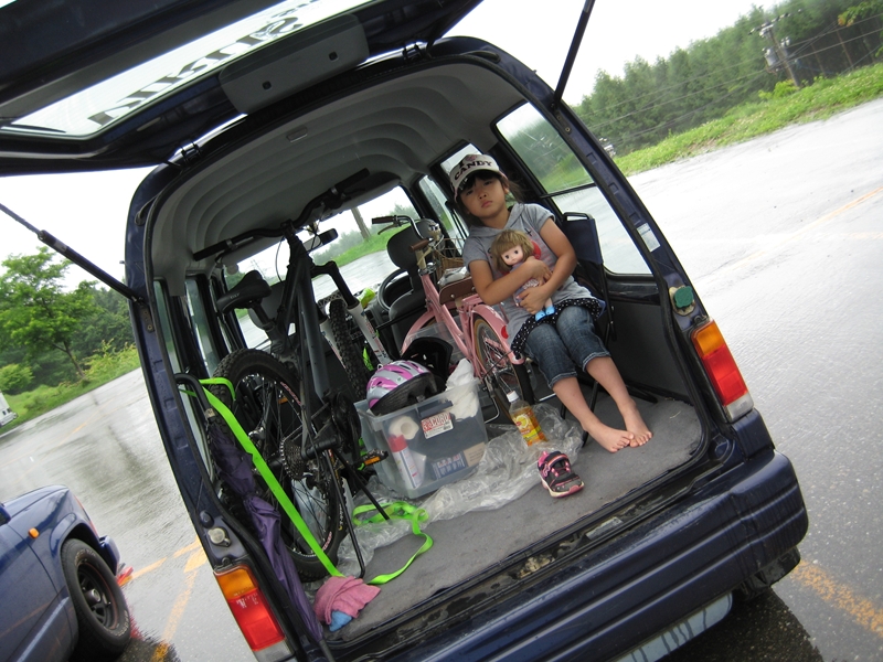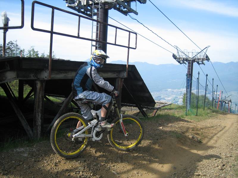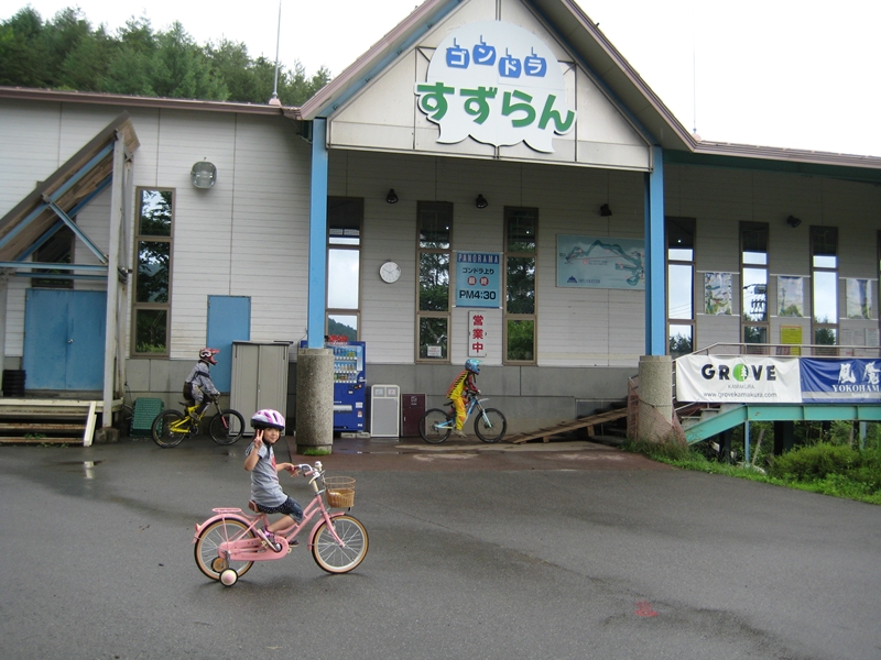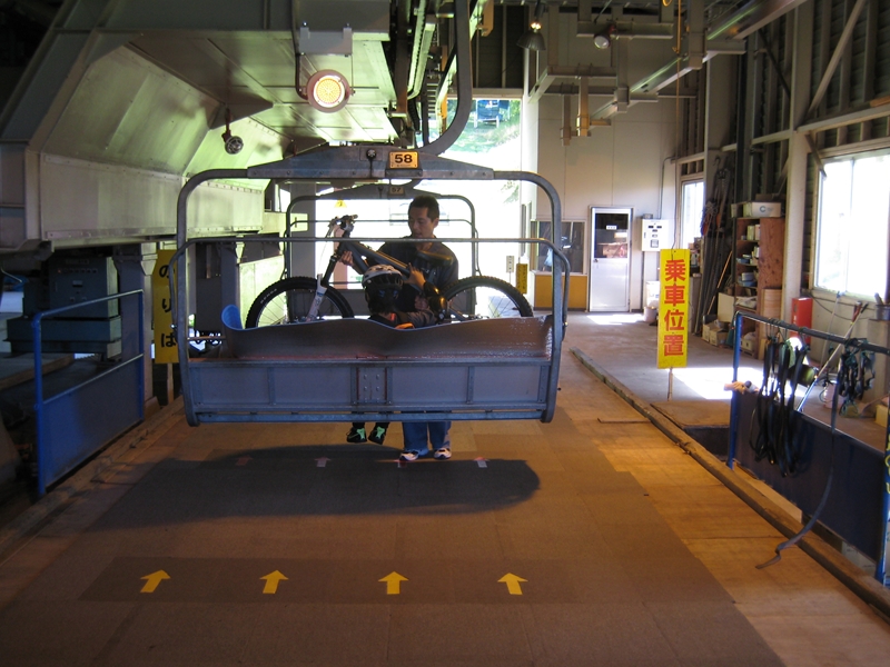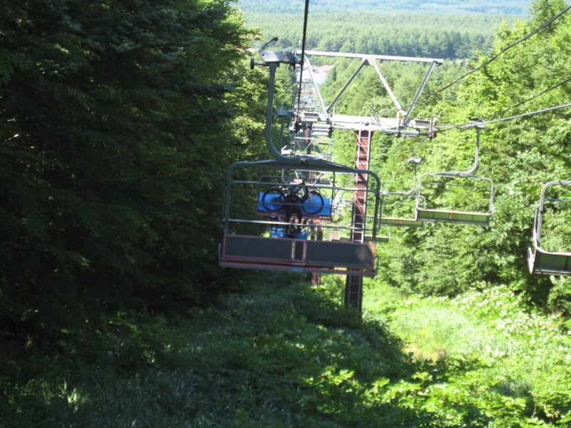 昨シーズン、ふじてんで一度も滑れなかったsのですが、まさかちゃりんこで来るとは・・・で、さて、どんな風にリフトに乗るの?ですが、クワっドリフトを一人占有で真ん中に乗り、落っこちないバーを下した上からリフト係りのお兄さんがちゃりんこを乗っけてくれます!。なんてシンプルで簡単なんだ!。最高です!。それに、ふじてんは涼しい!。うちより確実に涼しいですし、パノラマより涼しいです!。リフトが涼しくて心地いいです!。