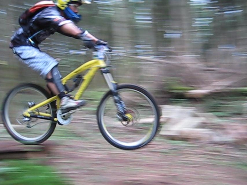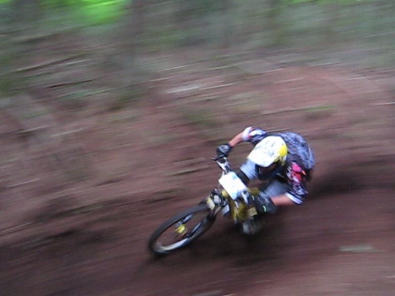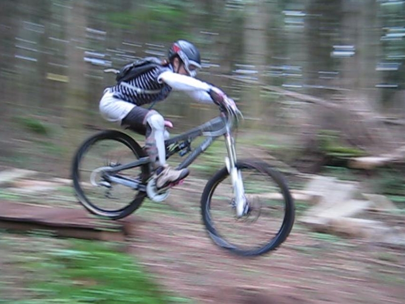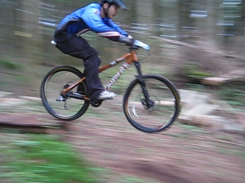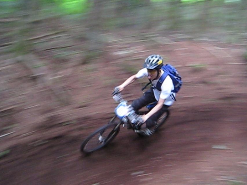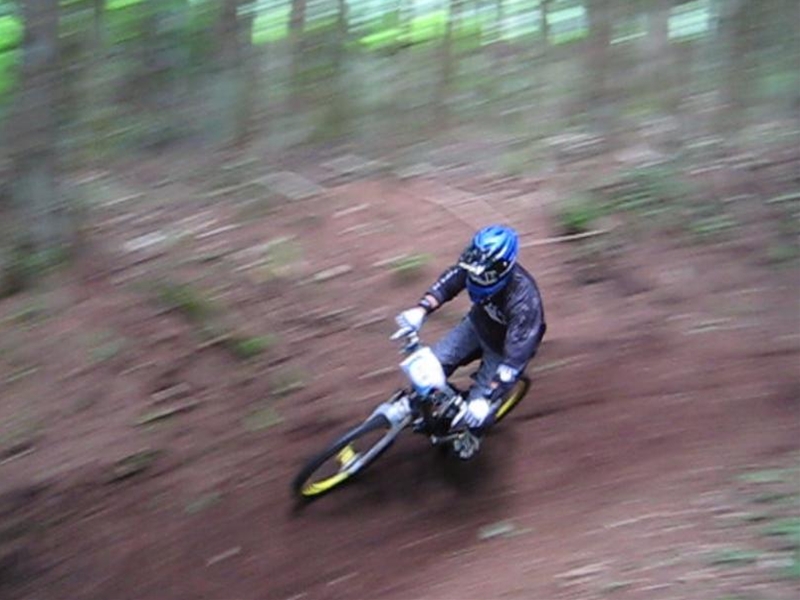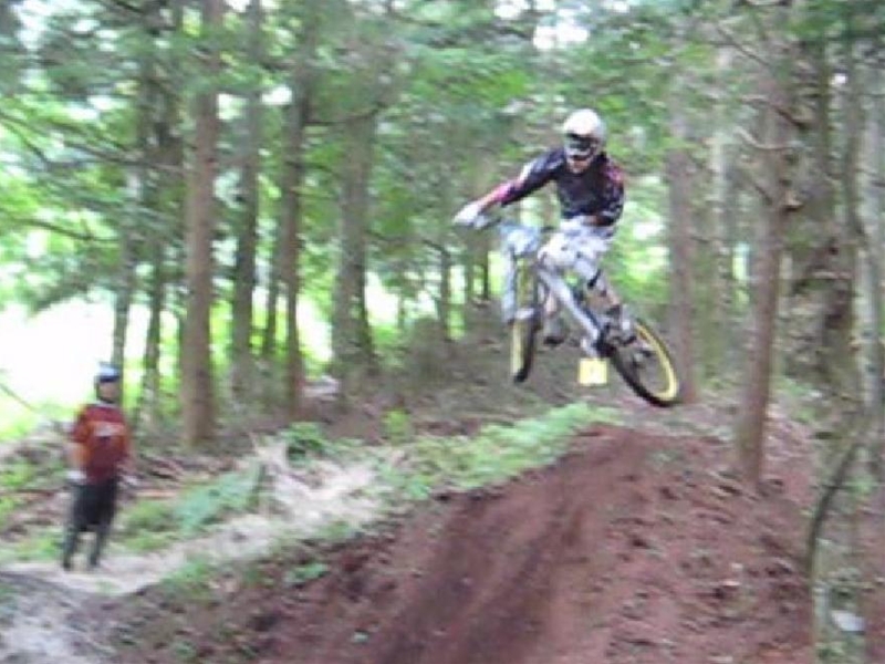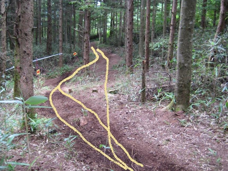 ・・・で、中級ダブルトラック。路面は枯れ葉とか土とかが混ざったフカフカバーン。またこれも気持ちいいです!。コースサイドがバンクになっている個所がありそれを使っても面白いし、途中にジャンプセクションがあったりでスピードに乗せて走れるので面白いです!。