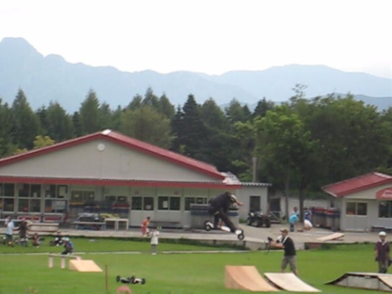 まずは初心者芝コース。ってもー、この幅全部使っていいんんですかー!ってこの芝の何処走ってもいいんですよ!。こんな芝の上を走るのはじめてだったけど、これが相当気持ちいいです!。スピードも出るし自由にラインを取れるのでロングカービング?したらもー最高!病みつきになりますよ!。でも、たまに凹みがあったり、芝って意外と滑るので調子こき過ぎるときっとぶっ飛びます(汗)。この初心者コースは初心者じゃなくても楽しめますよ!。