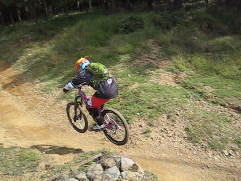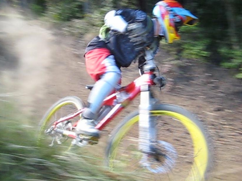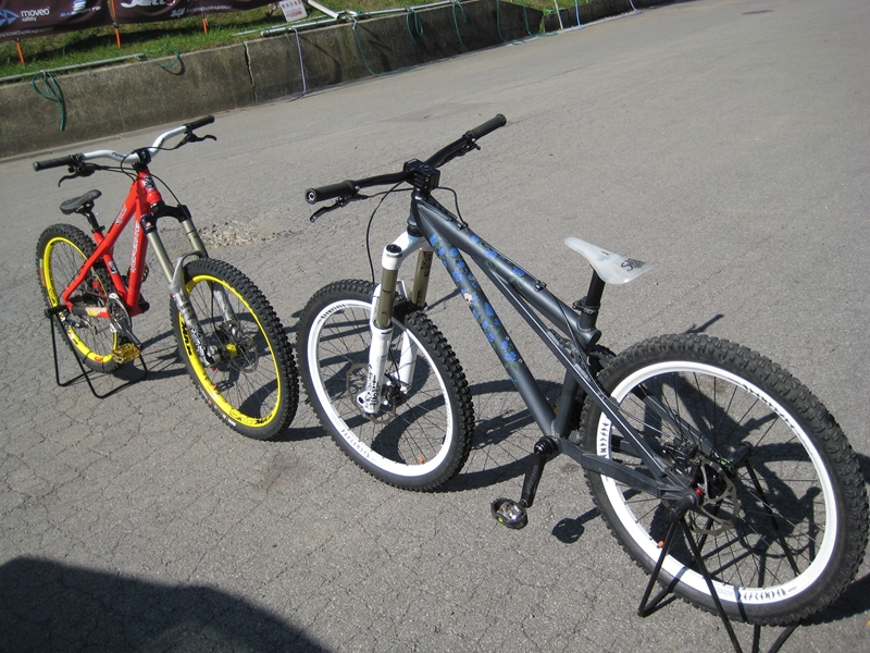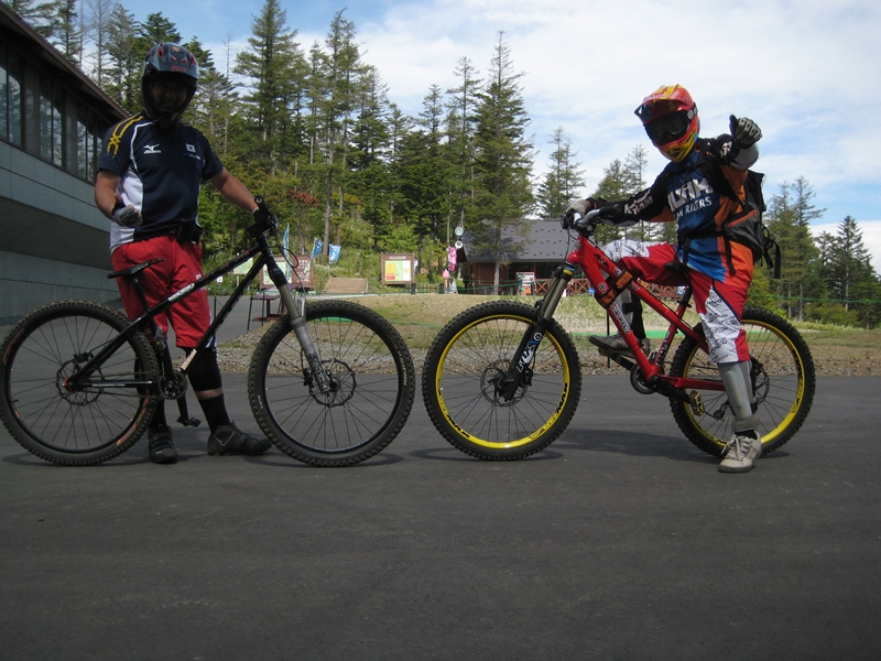 ・・・クロちゃん号と比べてフレームの硬さはそんなに感じなかったのですが、ホイールベースがクロちゃん号に比べて5㎝くらい長いのと、キャスターが寝ているのでアンダーステアが強い。こんな強かったっけ?って感じ・・・クロちゃん号はオーバーステアなのでなおさらそう感じるのかも・・・たまーにアンダーでコースアウトしそうでした( ̄〇 ̄;)。chizukaさんGT号の撮影ありがとうございまーす!。